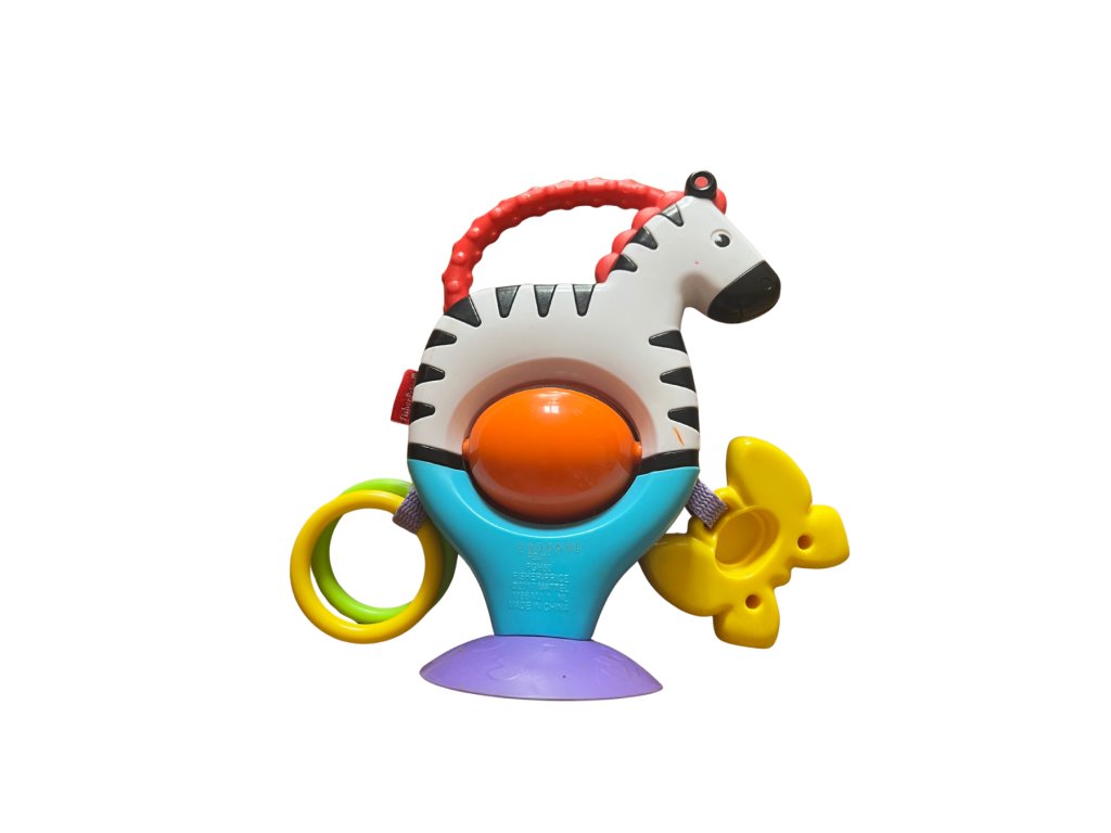 Zebra od známé značky fischer price. Krásná hračka, která má mnoho využití. Štěrkání, otáčení válečku, kytička, chytání hračky. Hračka se dá přicucnout i k podlaze, takže miminku nespadne.